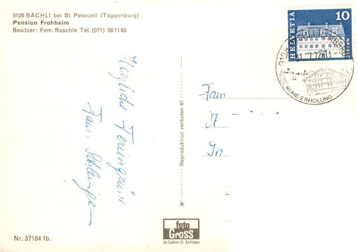 13896957 alte Postkarte Baechli-Hemberg SG Pension Frohheim Zimmer Gastraum Schwimmbad postalisch gelaufen Erhaltung siehe scans [FriedD77] KatCode: 11470190585782