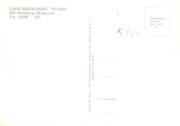 73885878 Baerbroich Cafe Restaurant Fuchs Gastraeume Kegelbahn postalisch nicht gelaufen Erhaltung siehe scans [WerneD78] KatCode: 11110005378004