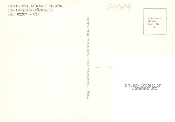 73864000 Baerbroich Cafe Restaurant Fuchs Gastraeume postalisch nicht gelaufen Erhaltung siehe scans [WerneD78] KatCode: 11110005378004