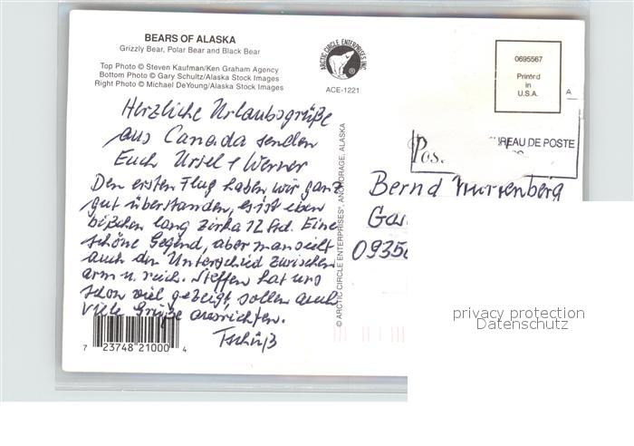alte Postkarte Baeren Bears of Alaska Grizzly Bear Polar Bear Black Bear postalisch gelaufen Erhaltung siehe scans
