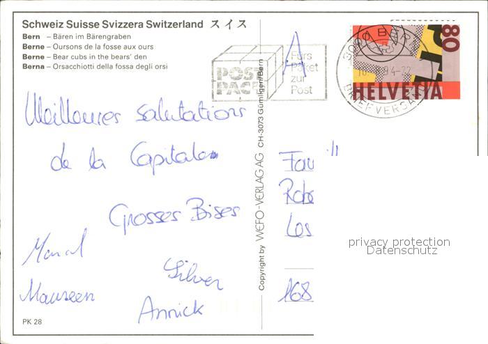 alte Postkarte Baeren Bern Baerengraben postalisch gelaufen Erhaltung siehe scans
