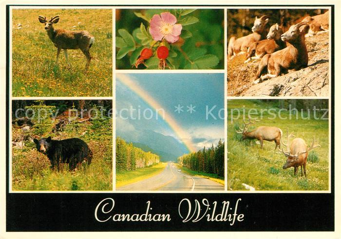alte Postkarte Baeren Hirsch Steinbock Blume Regenbogen Canada postalisch gelaufen Erhaltung siehe scans [PaolaD17]