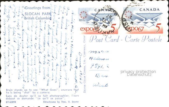 alte Postkarte Baeren Slocan Park British Columbia Canada postalisch gelaufen Erhaltung siehe scans