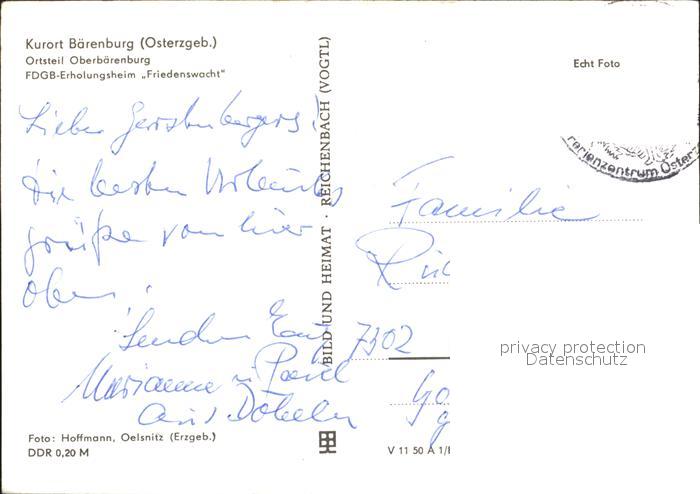 72017662 alte Postkarte Baerenburg Sachsen FDGB Erholungsheim Friedenswacht postalisch gelaufen Erhaltung siehe scans KatCode: 11110014290010