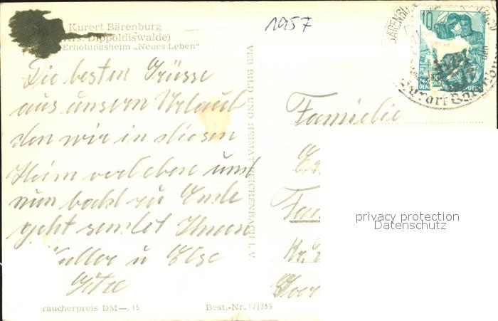 72467525 alte Postkarte Baerenburg Sachsen FDGB Erholungsheim Neues Leben postalisch gelaufen Erhaltung siehe scans KatCode: 11110014290010