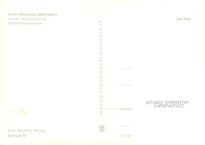 73167095 Baerenburg Sachsen FDGB Erholungsheim postalisch nicht gelaufen Erhaltung siehe scans [WerneD78] KatCode: 11110014290010
