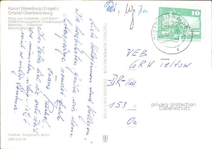 72320149 alte Postkarte Baerenburg Sachsen Hotel Gaststaette zum Baeren Bahnhof Kipsdorf postalisch gelaufen Erhaltung siehe scans KatCode: 11110014290010
