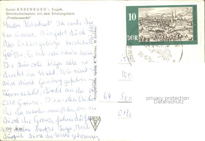 72250815 alte Postkarte Baerenburg Sachsen Omnibushalteplatz Erholungsheim Friedenswacht postalisch gelaufen Erhaltung siehe scans KatCode: 11110014290010