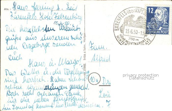 72007983 alte Postkarte Baerenfels Erzgebirge postalisch gelaufen Erhaltung siehe scans KatCode: 11110014290010
