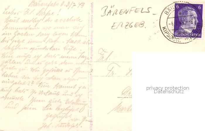 73806893 alte Postkarte Baerenfels Erzgebirge Altenberg Panorama postalisch gelaufen Erhaltung siehe scans [WerneD78] KatCode: 11110014290010