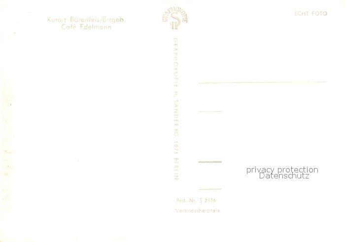 73090453 Baerenfels Erzgebirge Cafe Edelmann postalisch nicht gelaufen Erhaltung siehe scans [NatalD47] KatCode: 11110014290010