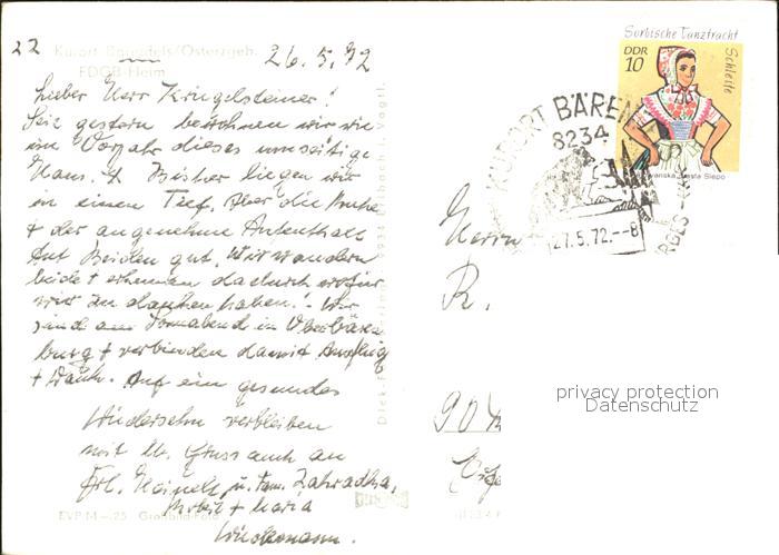 72335772 alte Postkarte Baerenfels Erzgebirge FDGB Erholungsheim postalisch gelaufen Erhaltung siehe scans KatCode: 11110014290010