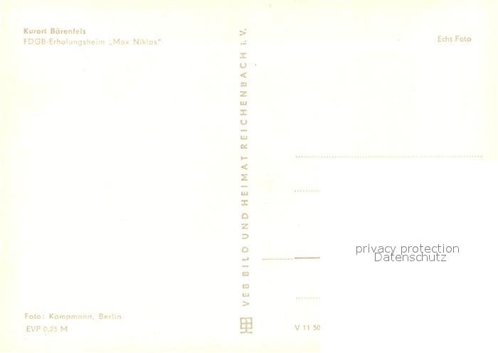 73094889 Baerenfels Erzgebirge FDGB Erholungsheim Max Niklas postalisch nicht gelaufen Erhaltung siehe scans [KathaD81] KatCode: 11110014290010