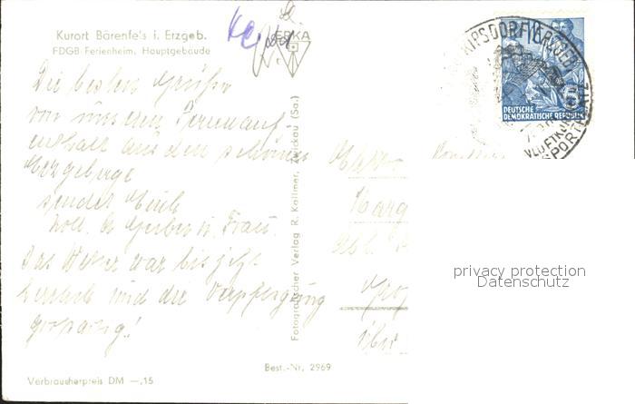 72167353 alte Postkarte Baerenfels Erzgebirge FDGB Ferienheim postalisch gelaufen Erhaltung siehe scans KatCode: 11110014290010