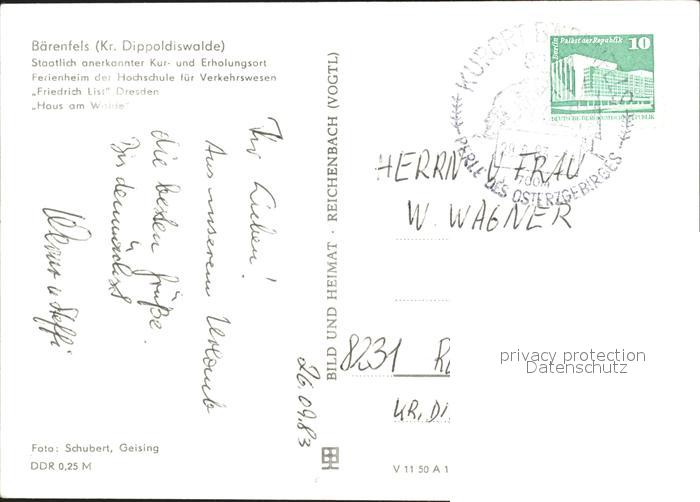 72367708 alte Postkarte Baerenfels Erzgebirge Ferienheim Friedrich List Haus am Walde postalisch gelaufen Erhaltung siehe scans KatCode: 11110014290010
