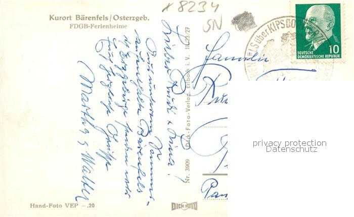 73096125 alte Postkarte Baerenfels Erzgebirge Ferienheime FDGB postalisch gelaufen Erhaltung siehe scans [KathaD81] KatCode: 11110014290010