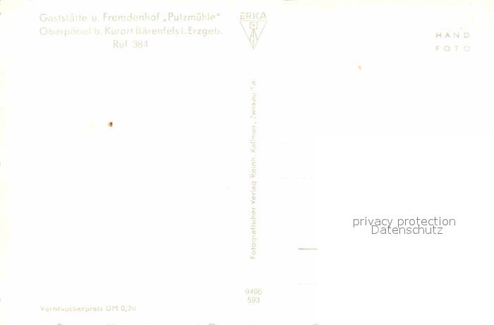 72640607 Baerenfels Erzgebirge Gaststaette Fremdenhof Putzmuehle Winter postalisch nicht gelaufen Erhaltung siehe scans [KathaD79] KatCode: 11110014290010