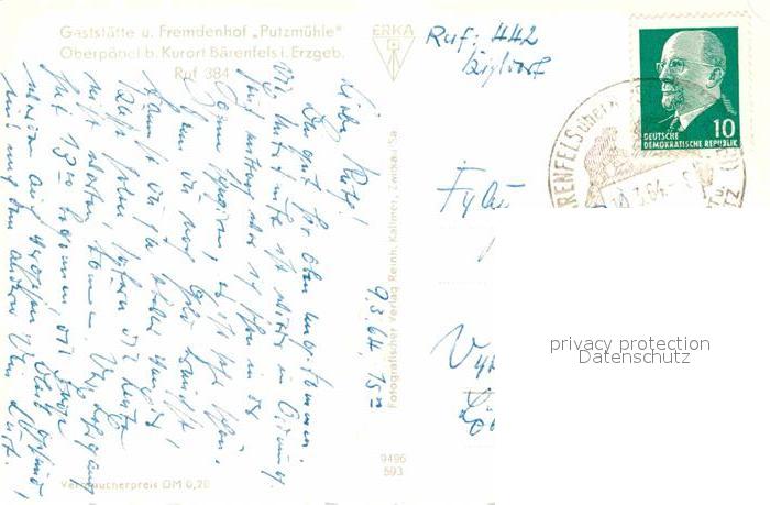 72640662 alte Postkarte Baerenfels Erzgebirge Gaststaette Fremdenhof Putzmuehle Winter postalisch gelaufen Erhaltung siehe scans [KathaD79] KatCode: 11110014290010