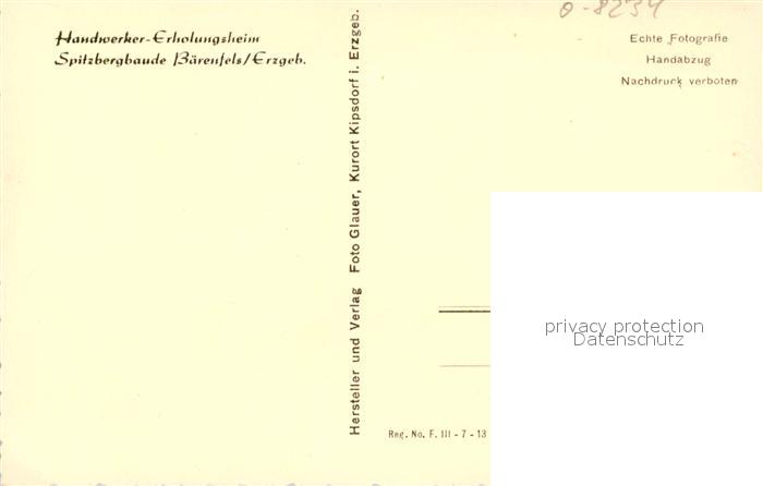 43349567 Baerenfels Erzgebirge Handwerker Erholungsheim Spitzbergbaude Handabzug postalisch nicht gelaufen Erhaltung siehe scans [FriedD77] KatCode: 11110014290010