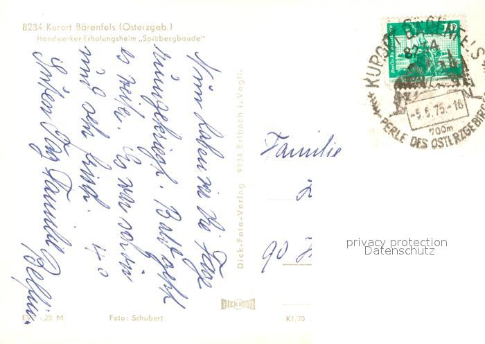 73739260 alte Postkarte Baerenfels Erzgebirge Handwerker-Erholungsheim Spitzbergbaude Schnee Witner postalisch gelaufen Erhaltung siehe scans [LiesaD40] KatCode: 11110014290010
