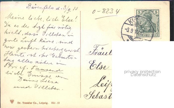 42358141 alte Postkarte Baerenfels Erzgebirge Hotel und Pension Kaiserhof postalisch gelaufen Erhaltung siehe scans KatCode: 11110014290010