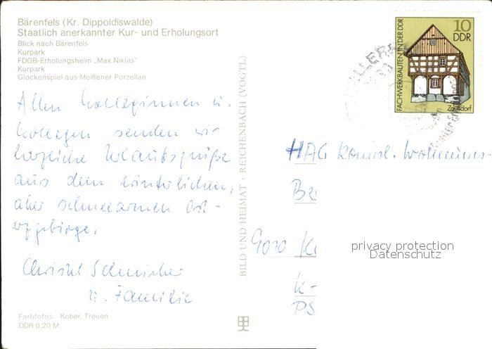 72583086 alte Postkarte Baerenfels Erzgebirge Kurpark FDGB Erholungsheim Glockenspiel aus Meissener Porzellan postalisch gelaufen Erhaltung siehe scans [FriedD77] KatCode: 11110014290010