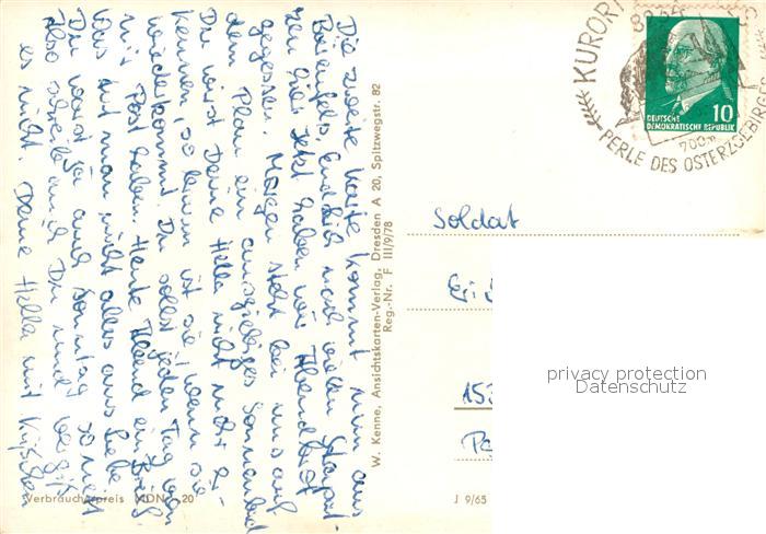 72925765 alte Postkarte Baerenfels Erzgebirge Kurpark Steinbock Glocke des Friedens postalisch gelaufen Erhaltung siehe scans [PaolaD17] KatCode: 11110014290010