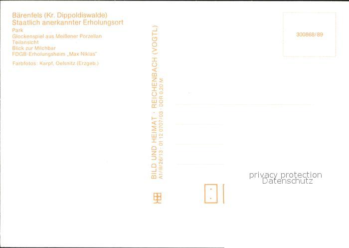 72424063 Baerenfels Erzgebirge Milchbar Park Glockenspiel postalisch nicht gelaufen Erhaltung siehe scans KatCode: 11110014290010