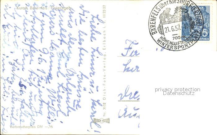 72413369 alte Postkarte Baerenfels Erzgebirge mit Spitzberg Altes Forsthaus Blick vom Steinmeer postalisch gelaufen Erhaltung siehe scans KatCode: 11110014290010