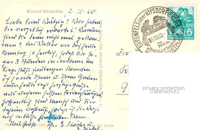 72640661 alte Postkarte Baerenfels Erzgebirge Panorama postalisch gelaufen Erhaltung siehe scans [KathaD79] KatCode: 11110014290010