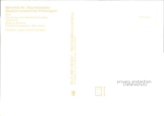 72424111 Baerenfels Erzgebirge Park Glockenspiel Teilansicht Milchbar FDGB Erholungsheim Max Niklas postalisch nicht gelaufen Erhaltung siehe scans KatCode: 11110014290010