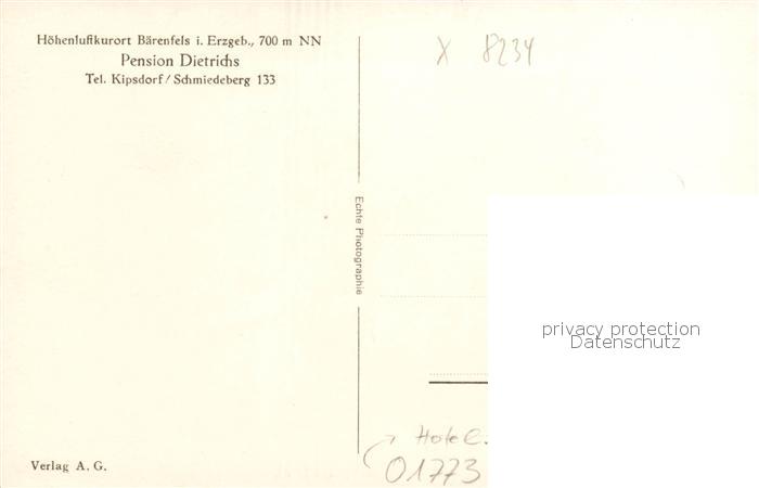 73792393 Baerenfels Erzgebirge Pension Dietrichs Aussenansicht postalisch nicht gelaufen Erhaltung siehe scans [LiesaD40] KatCode: 11110014290010
