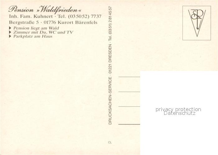 73658289 Baerenfels Erzgebirge Pension Waldfrieden am Wald postalisch nicht gelaufen Erhaltung siehe scans [FriedD77] KatCode: 11110014290010