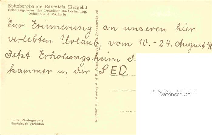 72634117 Baerenfels Erzgebirge Spitzbergbaude postalisch nicht gelaufen Erhaltung siehe scans [AndreD76] KatCode: 11110014290010