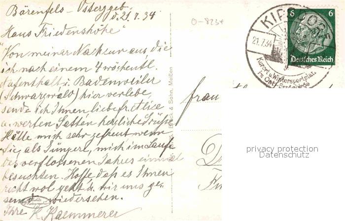 72791582 alte Postkarte Baerenfels Erzgebirge Teilansicht postalisch gelaufen Erhaltung siehe scans [AndreD76] KatCode: 11110014290010