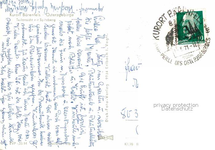 72643926 alte Postkarte Baerenfels Erzgebirge Teilansicht mit Spitzberg postalisch gelaufen Erhaltung siehe scans [FriedD77] KatCode: 11110014290010