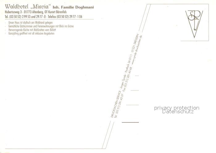 73652867 Baerenfels Erzgebirge Waldhotel Misnia Fremdenzimmer Landschaftspanorama Pferdeschlitten postalisch nicht gelaufen Erhaltung siehe scans [FriedD77] KatCode: 11110014290010