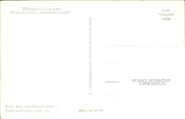 72506965 Baerenklau Niederlausitz Genesungsheim Georgi Dimitroff postalisch nicht gelaufen Erhaltung siehe scans KatCode: 11110012071337