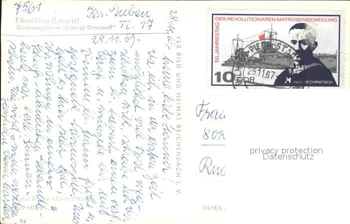 72427701 alte Postkarte Baerenklau Niederlausitz Genesungsheim Georgi Dimitroff postalisch gelaufen Erhaltung siehe scans KatCode: 11110012071337