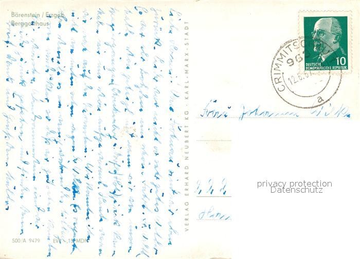 73055815 alte Postkarte Baerenstein Annaberg-Buchholz Berggasthaus postalisch gelaufen Erhaltung siehe scans [NatalD47] KatCode: 11110014171030