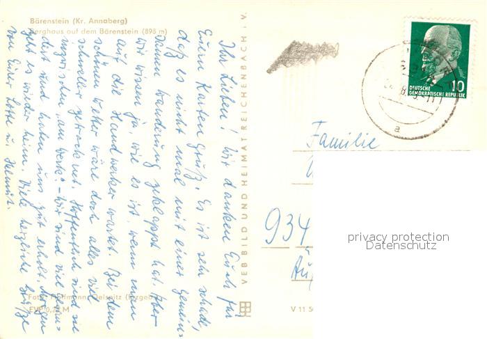 73095972 alte Postkarte Baerenstein Annaberg-Buchholz Berghaus Baerenstein postalisch gelaufen Erhaltung siehe scans [KathaD81] KatCode: 11110014171030