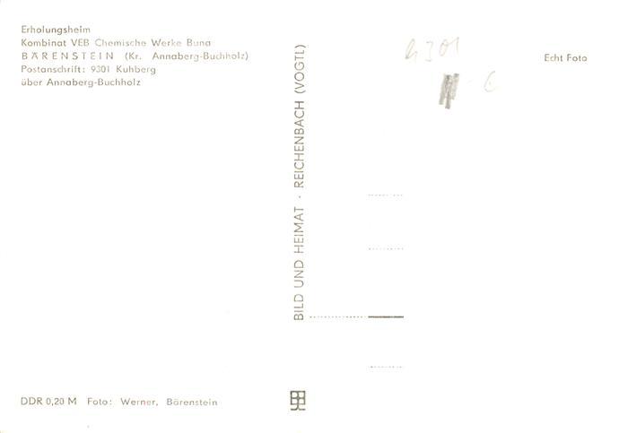 73908276 Baerenstein Annaberg-Buchholz Erholungsheim Kombinat VEB Chemische Werke Buna postalisch nicht gelaufen Erhaltung siehe scans [FriedD77] KatCode: 11110014171030