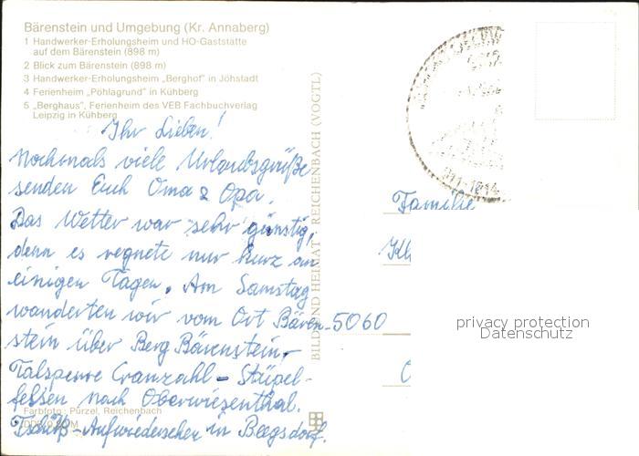 72557359 Baerenstein Annaberg-Buchholz Handwerker Erholungsheim HO Gaststaette postalisch nicht gelaufen Erhaltung siehe scans [KathaD79] KatCode: 11110014171030