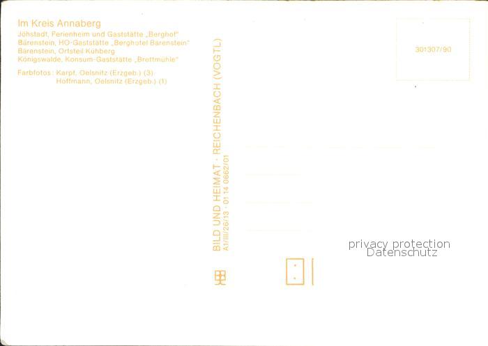 72325151 Baerenstein Annaberg-Buchholz HOG Berghotel Baerenstein Kuehberg Koenigswalde Konsum Gaststaette Brettmuehle Joehstadt Gaststaette Berghof postalisch nicht gelaufen Erhaltung siehe scans KatCode: 11110014171030