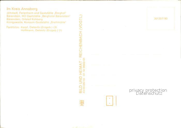 72326058 Baerenstein Annaberg-Buchholz Joehstadt Gaststaette Berghof HOG Berghotel Baerenstein OT Kuehberg Koenigswalde Konsum Gaststaette Brettmuehle postalisch nicht gelaufen Erhaltung siehe scans KatCode: 11110014171030