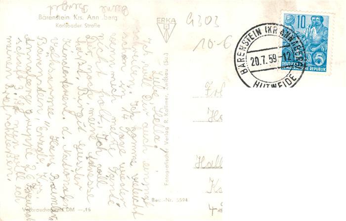 73907278 alte Postkarte Baerenstein Annaberg-Buchholz Karlsbader Strasse postalisch gelaufen Erhaltung siehe scans [FriedD77] KatCode: 11110014171030