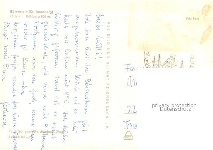 73101402 alte Postkarte Baerenstein Annaberg-Buchholz Kuehberg postalisch gelaufen Erhaltung siehe scans [LiesaD40] KatCode: 11110014171030