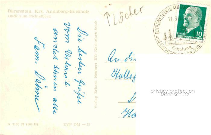 72633713 alte Postkarte Baerenstein Annaberg-Buchholz Panorama Blick zum Fichtelberg postalisch gelaufen Erhaltung siehe scans [FriedD77] KatCode: 11110014171030