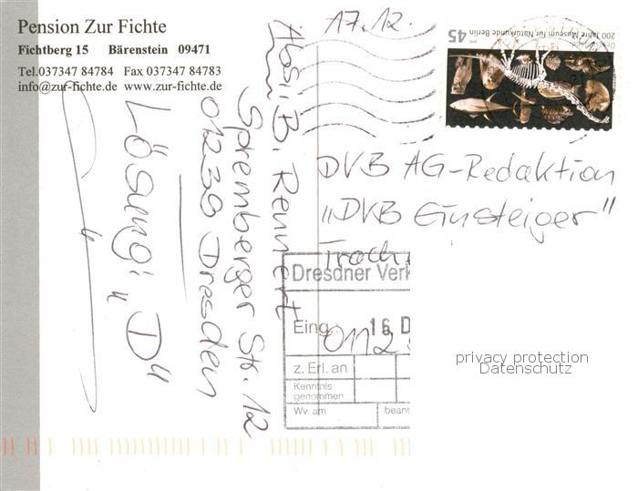 73858599 alte Postkarte Baerenstein Annaberg-Buchholz Pension zur Fichte Wintersportplatz Erzgebirge postalisch gelaufen Erhaltung siehe scans [FriedD77] KatCode: 11110014171030