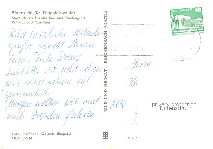73294672 alte Postkarte Baerenstein Annaberg-Buchholz Rathaus Postsaeule postalisch gelaufen Erhaltung siehe scans [LiesaD40] KatCode: 11110014171030